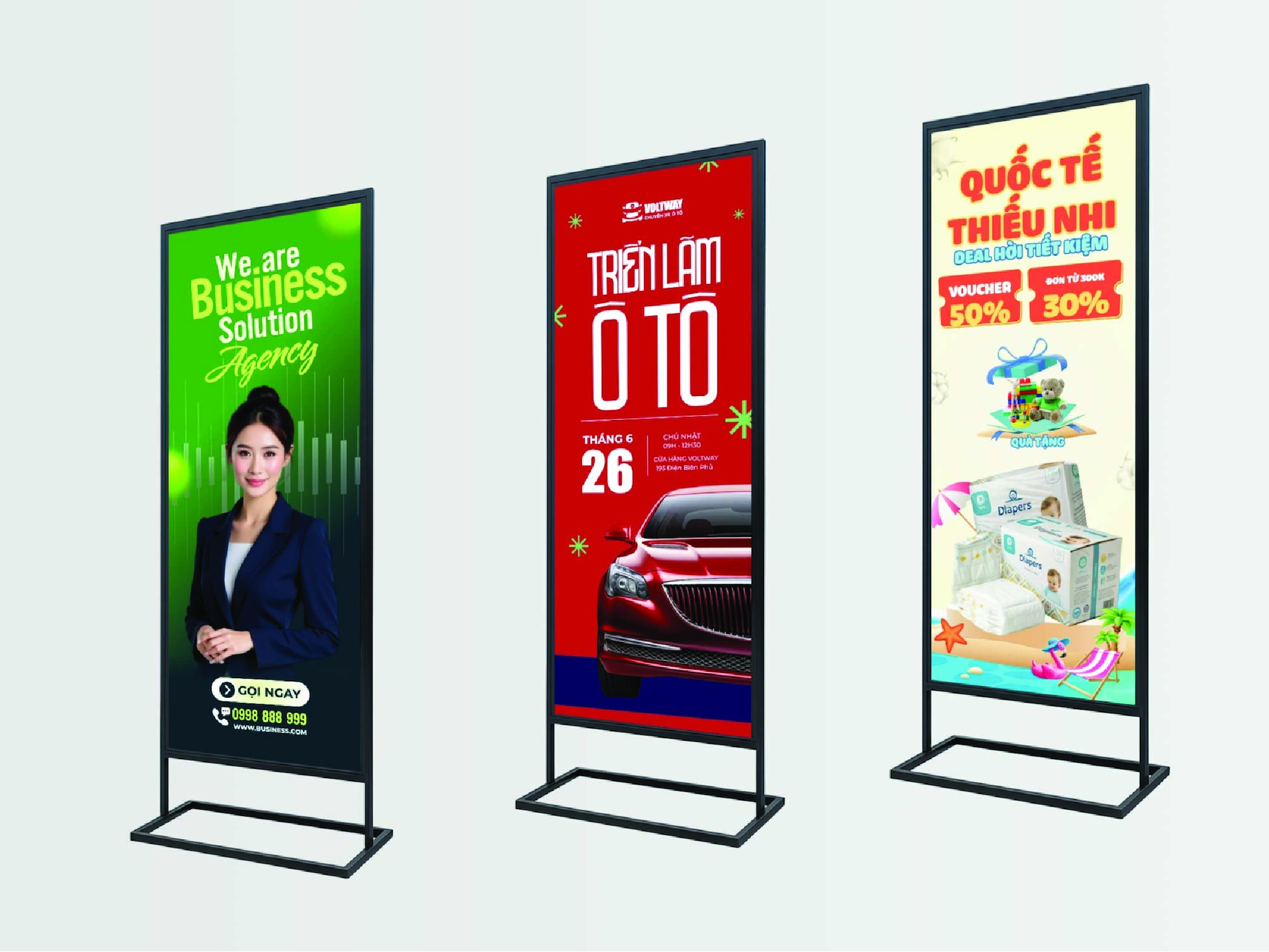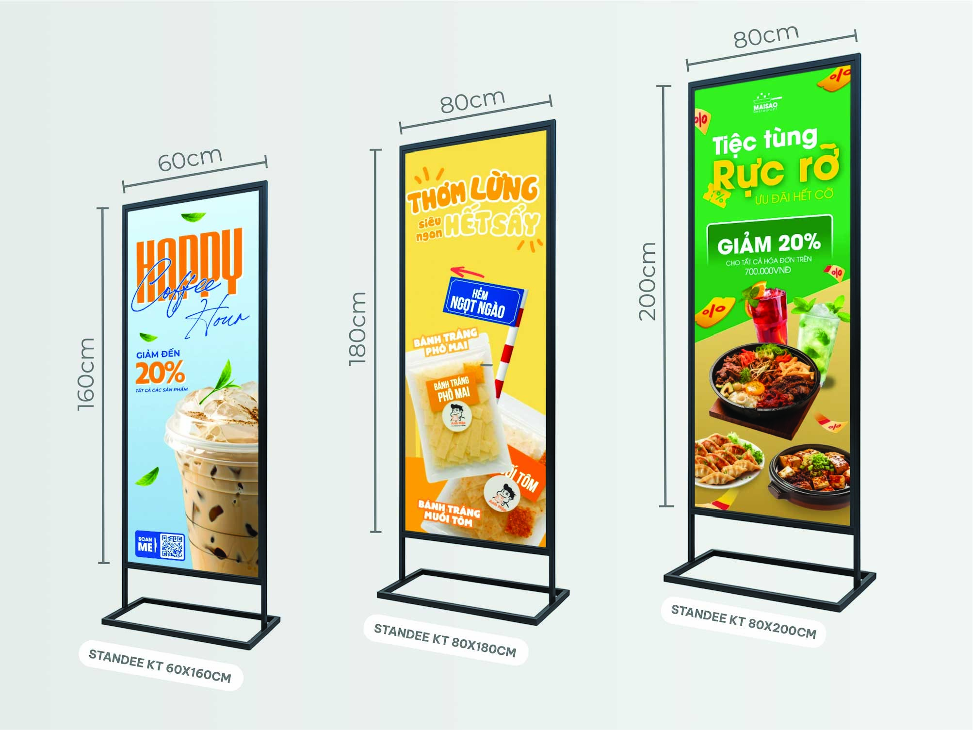 Standee chân sắt được dùng phổ biến trong quảng cáo, giới thiệu sản phẩm, chương trình khuyến mãi, sự kiện.